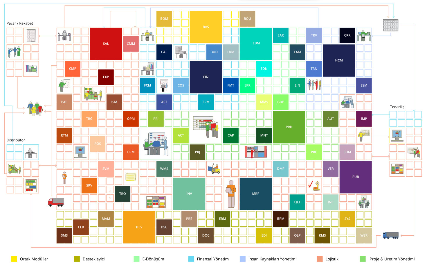 ERP yazılımının temelini oluşturur ve yazılımın en önemli bölümüdür.